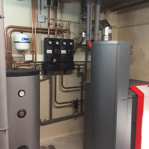 Installation d'une chaudière condensation gaz et d'un adoucisseur. Réalisation des travaux suivant le planning convenu. Travail soigné. Installateur très